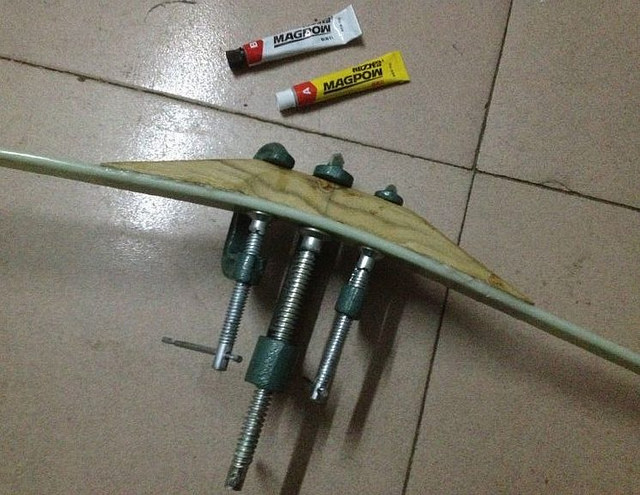 Use o método acima para colar a empunhadura do arco no centro da lâmina de fibra de vidro.