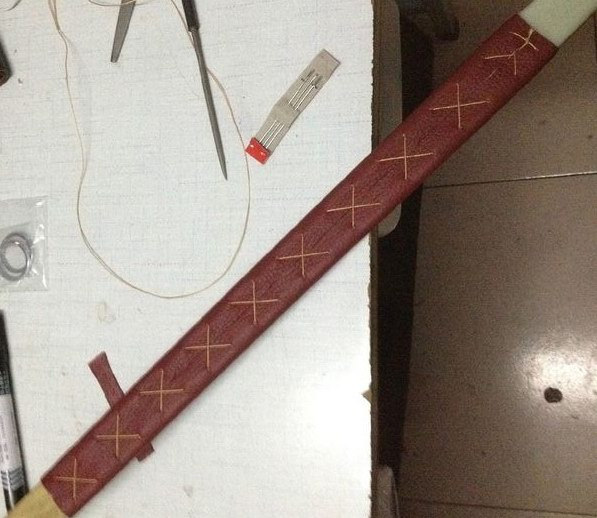 Lista de materiais:</strong > lâmina de fibra de vidro (1 metro); madeira para as pontas e para empunhadura (do passo 1); cola ( resina epóxi ou outra); fios de n ylon; c ouro; luvas de proteção (você não quer que a fibra de vidro machuque sua mão, certo?); sargentos ou grampos C, selador, verniz ou outro tipo de cobertura (tinta) para a madeira.</span >
