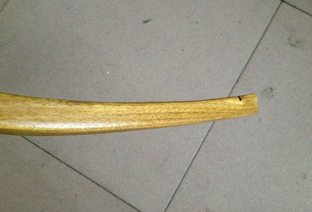 Polir as peças de madeira da ponta do arco e a lâmina por 2 rodadas.</span >